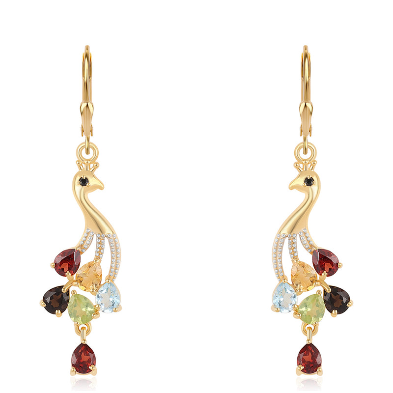 Pozlacené Stříbrné Náušnice s Červeným Granátem a Peridotem