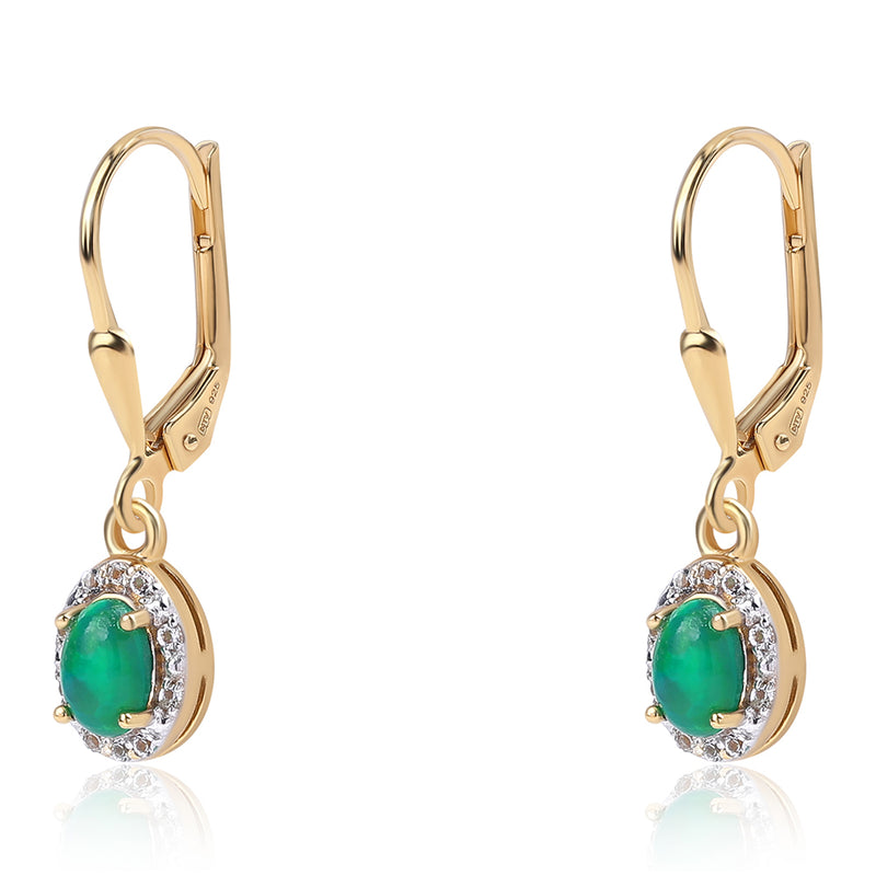 Pozlacené Stříbrné Náušnice se Zeleným Etiopským Opálem z Lega Dembi a Bílým Topazem