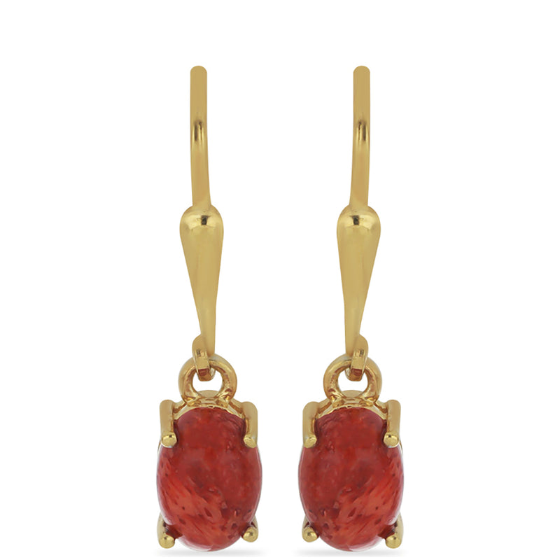 Pozlacené Stříbrné Náušnice s Červeným Houbovým Korálem