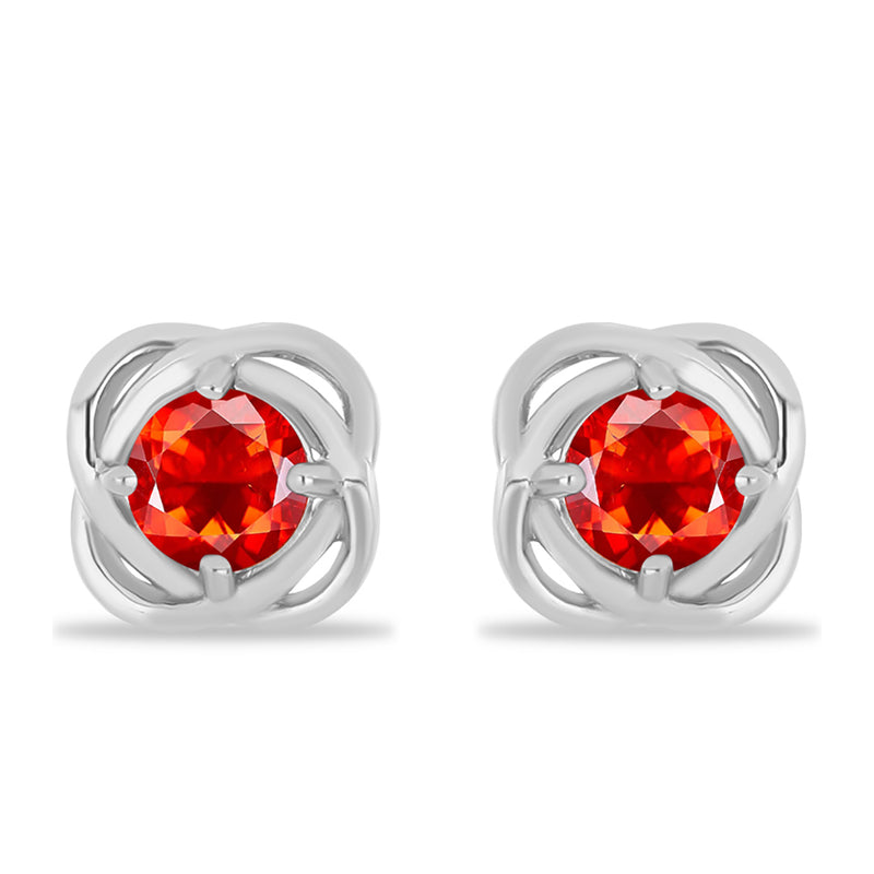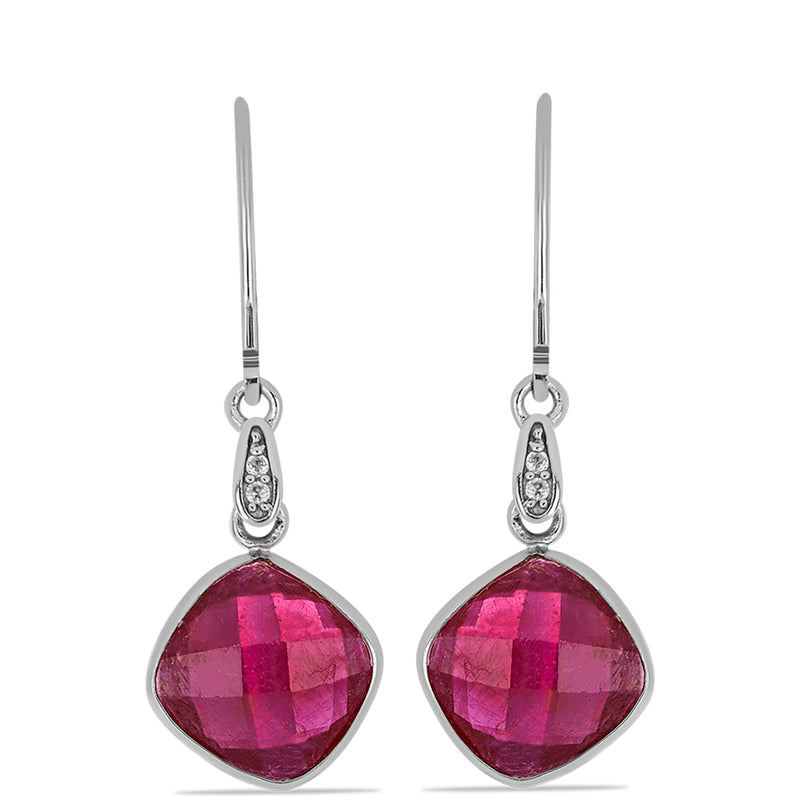 Stříbrné Náušnice s Madagaskarským Rubínem a Bílým Topazem