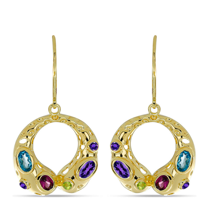 Pozlacené Stříbrné Náušnice s Marockým Ametystem a Čchang-pajským Peridotem