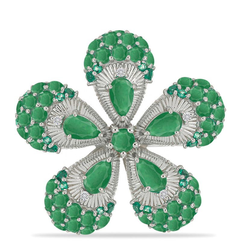 Stříbrný Prsten s Brazilským Smaragdem a Bílým Diamantem