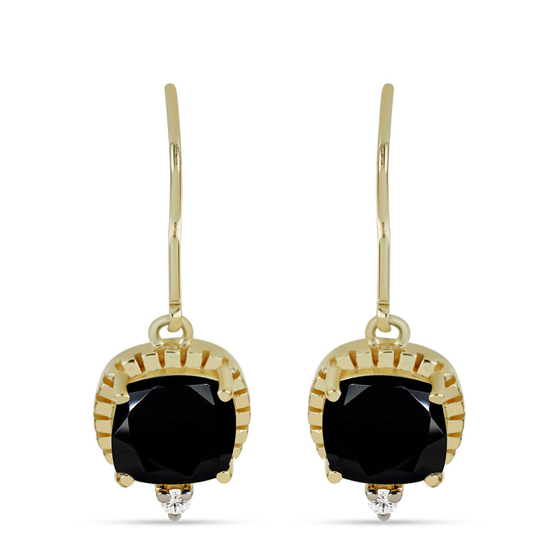 Pozlacené Stříbrné Náušnice s Černým spinelem a Bílým Topazem