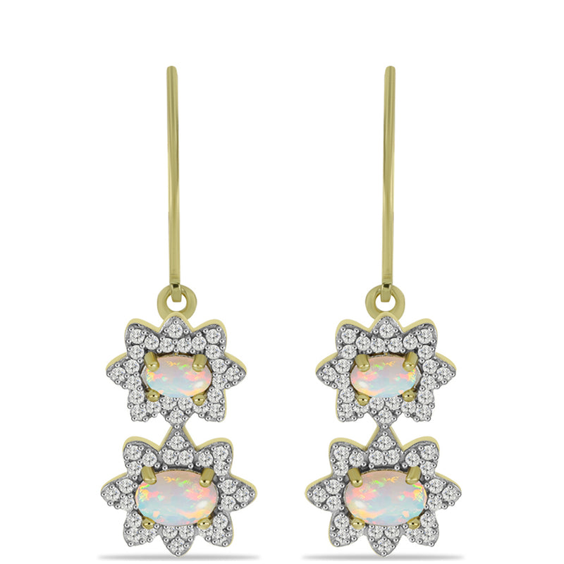 Pozlacené Stříbrné Náušnice s Welo opálem a Bílým Topazem