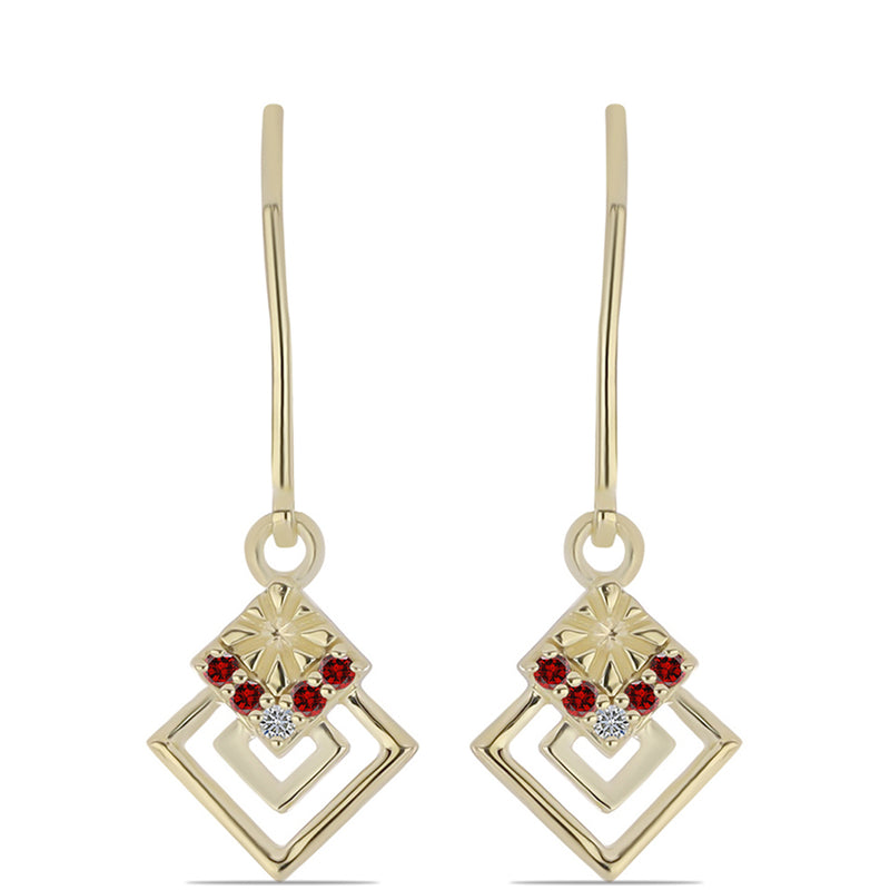 Pozlacené Stříbrné Náušnice s Červeným Diamantem a Bílým Diamantem