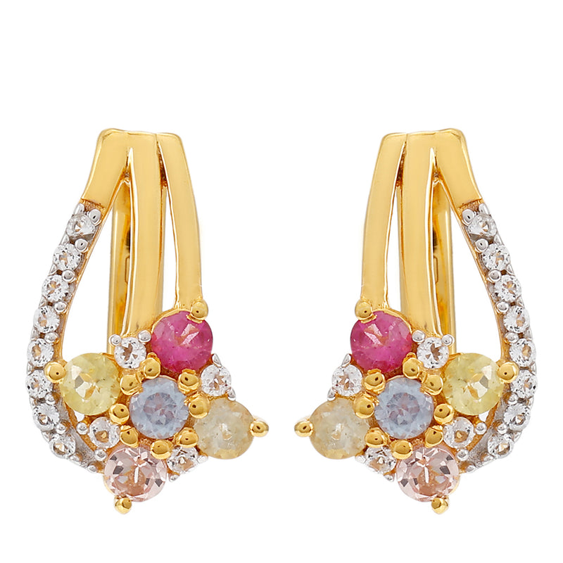Pozlacené Stříbrné Náušnice s Duhovým Turmalínem z Pelmadulla a Bílým Topazem