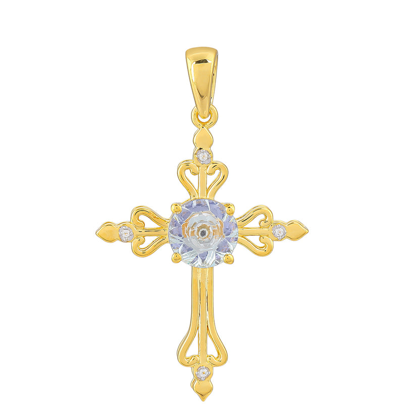 Kříž Pozlacený Stříbrný Přívěsek s Tanzanitem