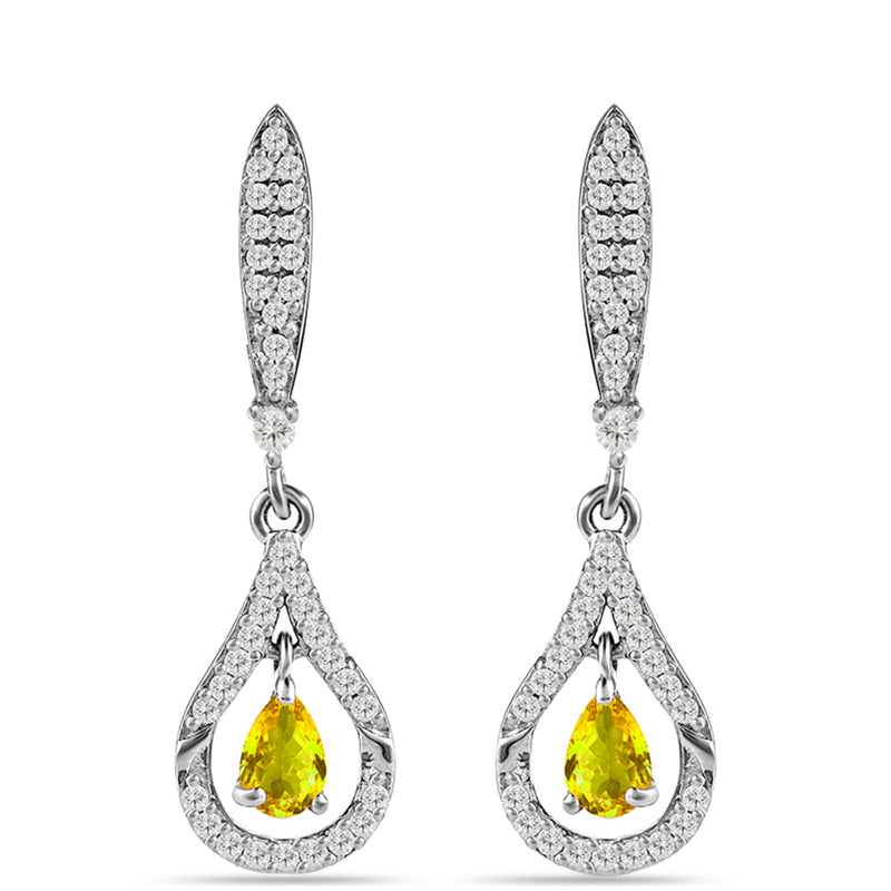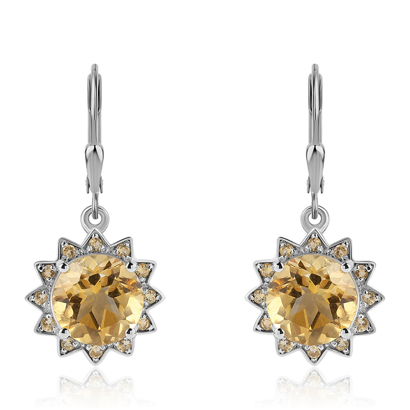 Stříbrné Náušnice s Uralským Citrínem a Bílým Topazem