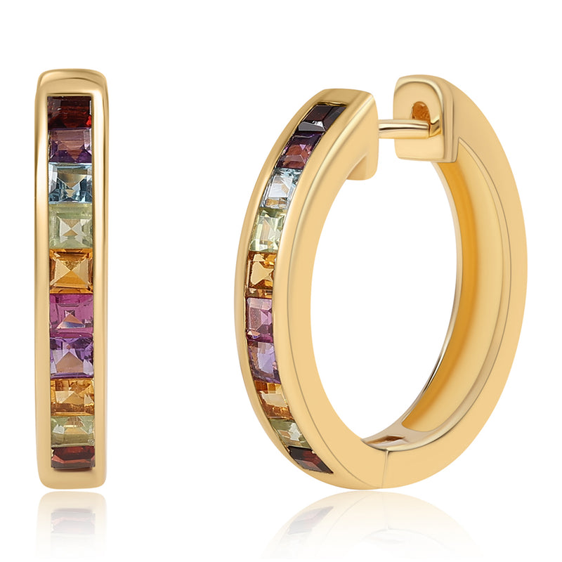 Pozlacené Stříbrné Náušnice s Duhovým Měsíčním Kamenem