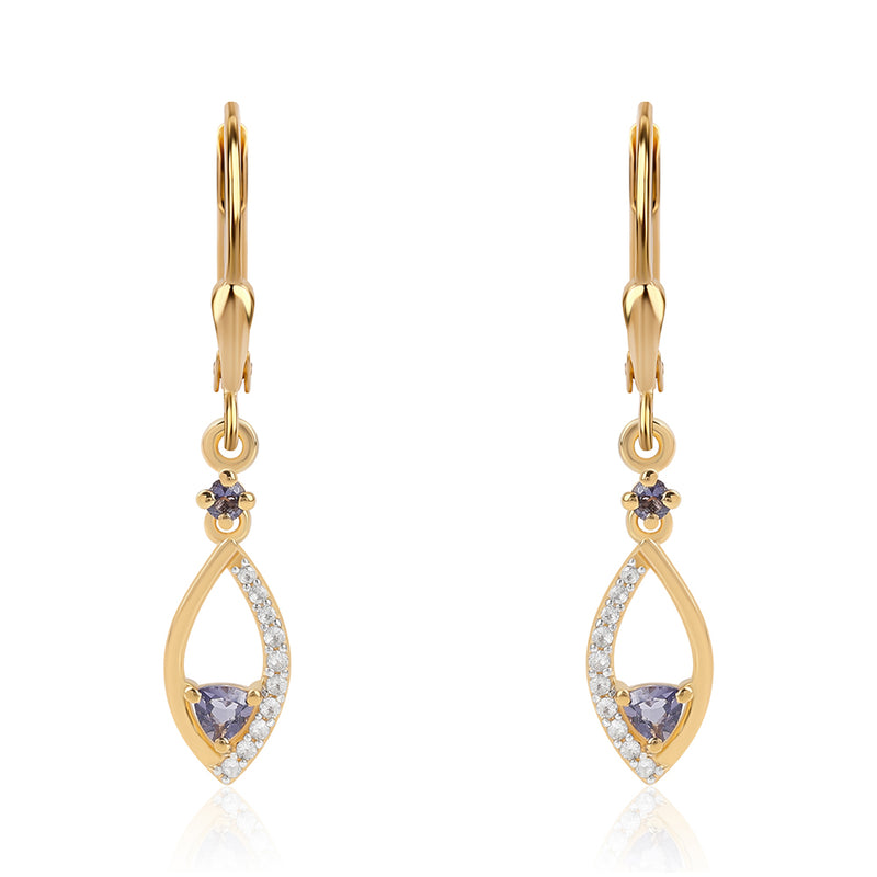 Pozlacené Stříbrné Náušnice s Iolitem a Bílým Topazem