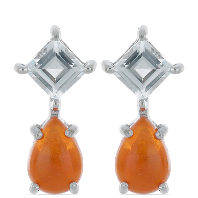 Stříbrné Náušnice s Oranžovým Opálem z Lega Dembi a Bílým Topazem