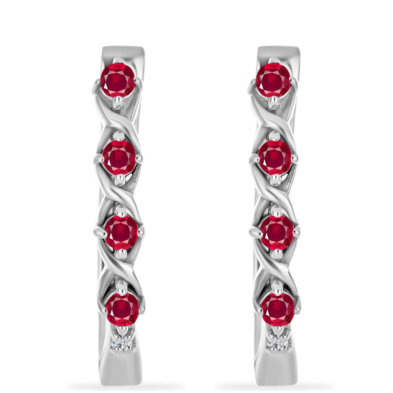 Stříbrné Náušnice s Madagaskarským Rubínem a Bílým Diamantem
