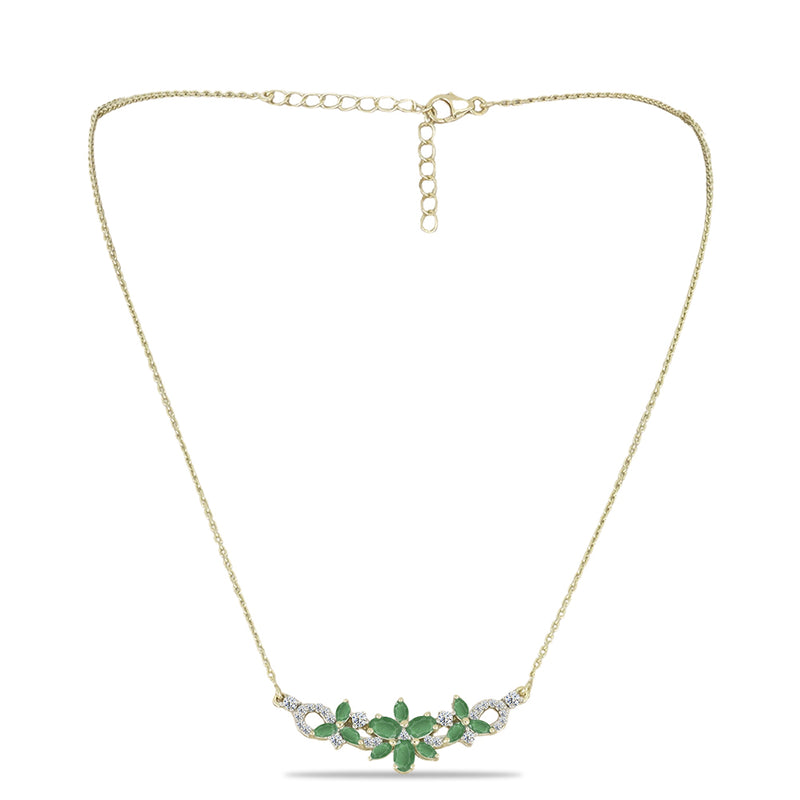 Pozlacený Stříbrný Náhrdelník s Brazilským Smaragdem a Bílým Topazem