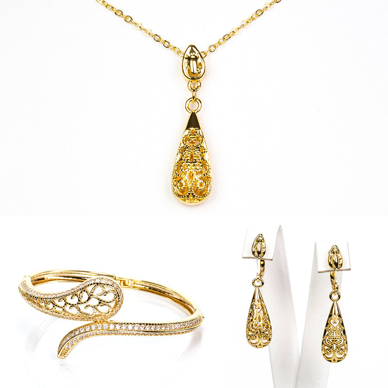 Pozlacená Slitinová Sada ( Náhrdelník+Náušnice+Náramek+Přívěsek )
