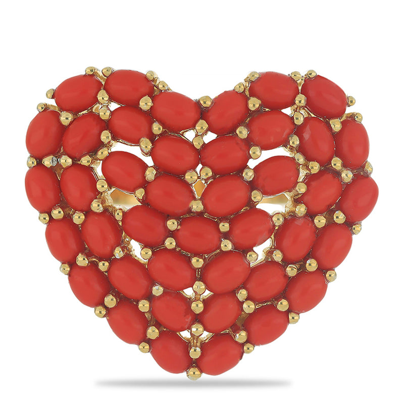 Pozlacený Stříbrný Prsten s Červeným Houbovým Korálem