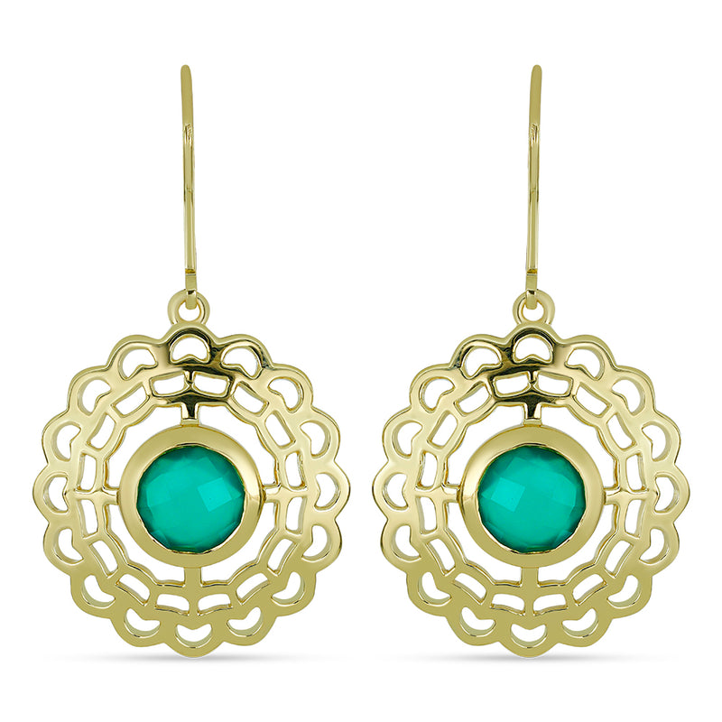Pozlacené Stříbrné Náušnice se Zeleným Chalcedonem