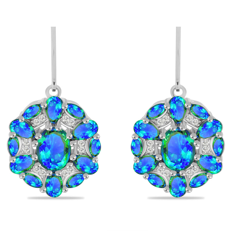 Stříbrné Náušnice s Pavím Křemenem a Bílým Topazem