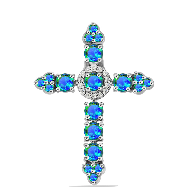 Kříž Stříbrný Přívěsek s Pavím Křemenem a Bílým Topazem
