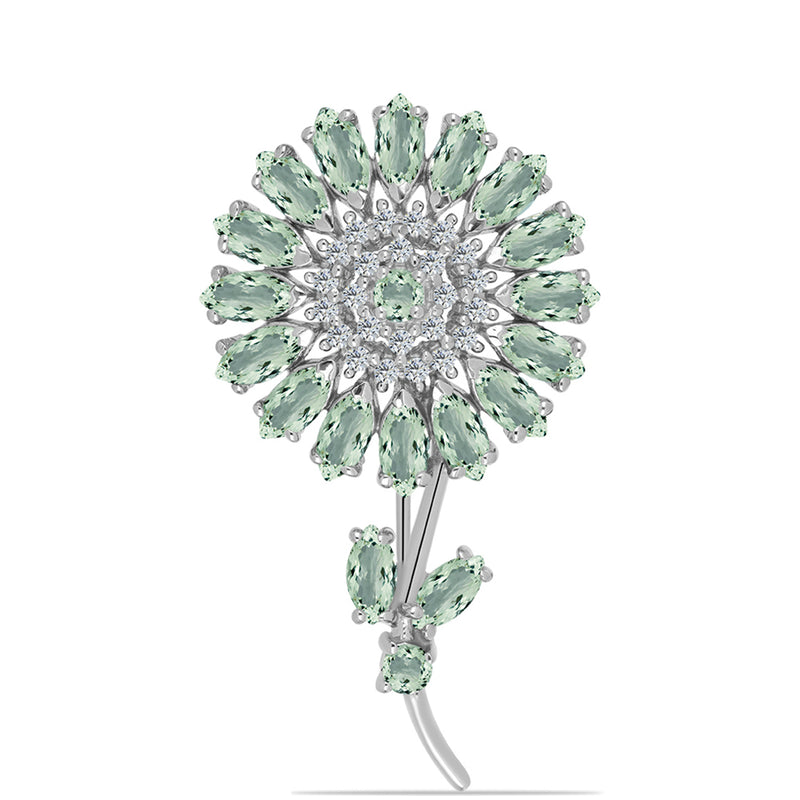 Stříbrný Brož se Zeleným Ametystem a Bílým Topazem