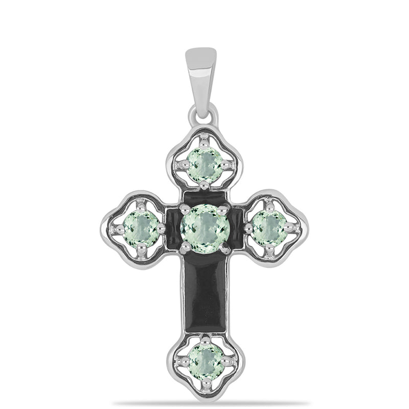 Kříž Stříbrný Přívěsek se Zeleným Ametystem
