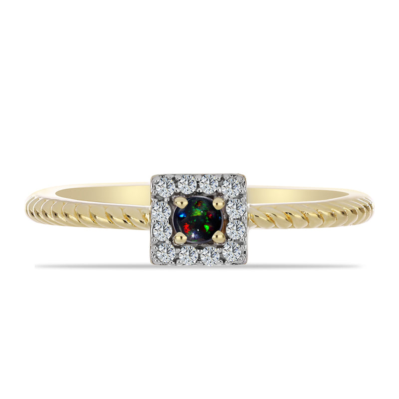 Stříbrný Prsten s Půlnočně Černým Etiopským Opálem z Lega Dembi a Bílým Topazem