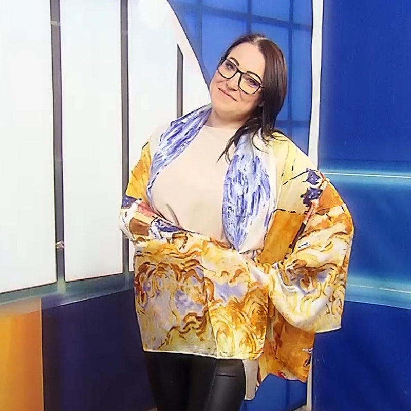 Šála-šátek ze 100% Pravého Hedvábí, 90 cm x 180 cm, Impresionistická vesnice