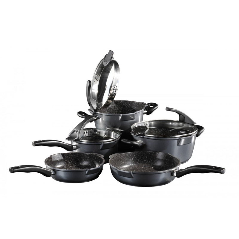 Sada nádob STONELINE® FUTURE 8ks se skleněnou filtrační poklicí, šedá