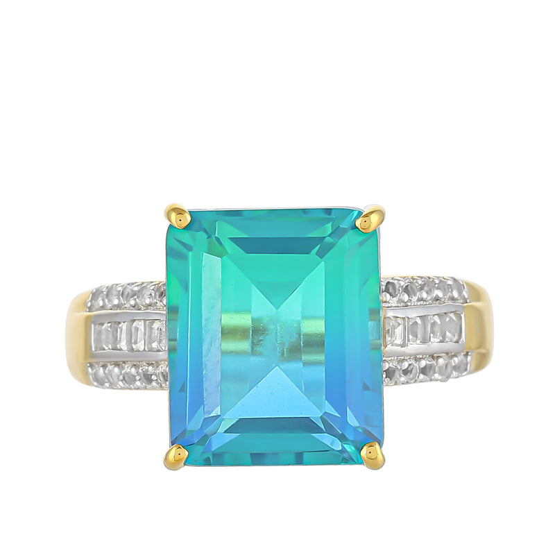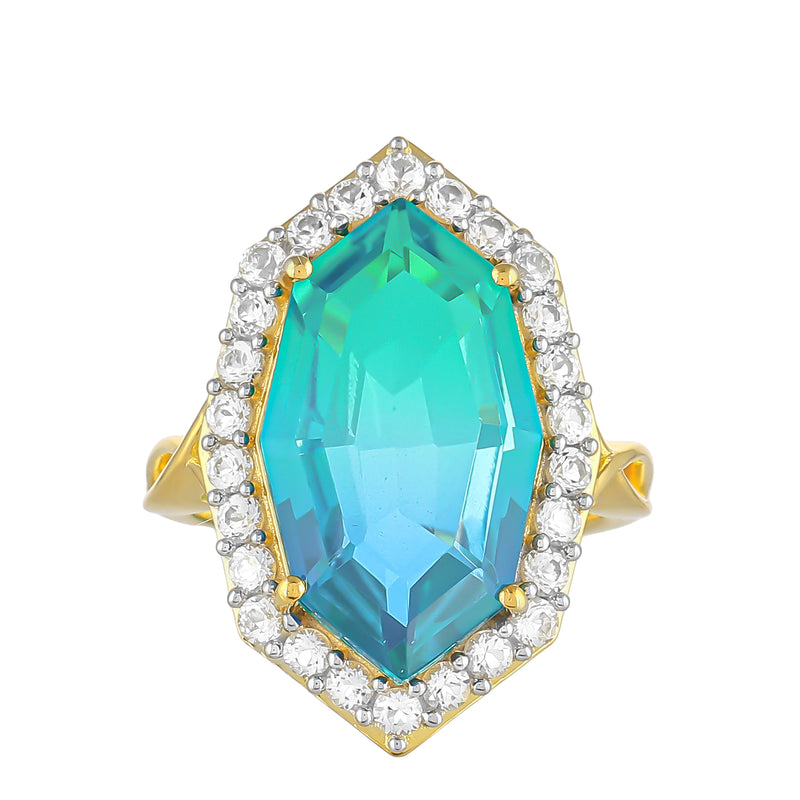 Pozlacený Stříbrný Prsten s Pavím Křemenem a Bílým Topazem