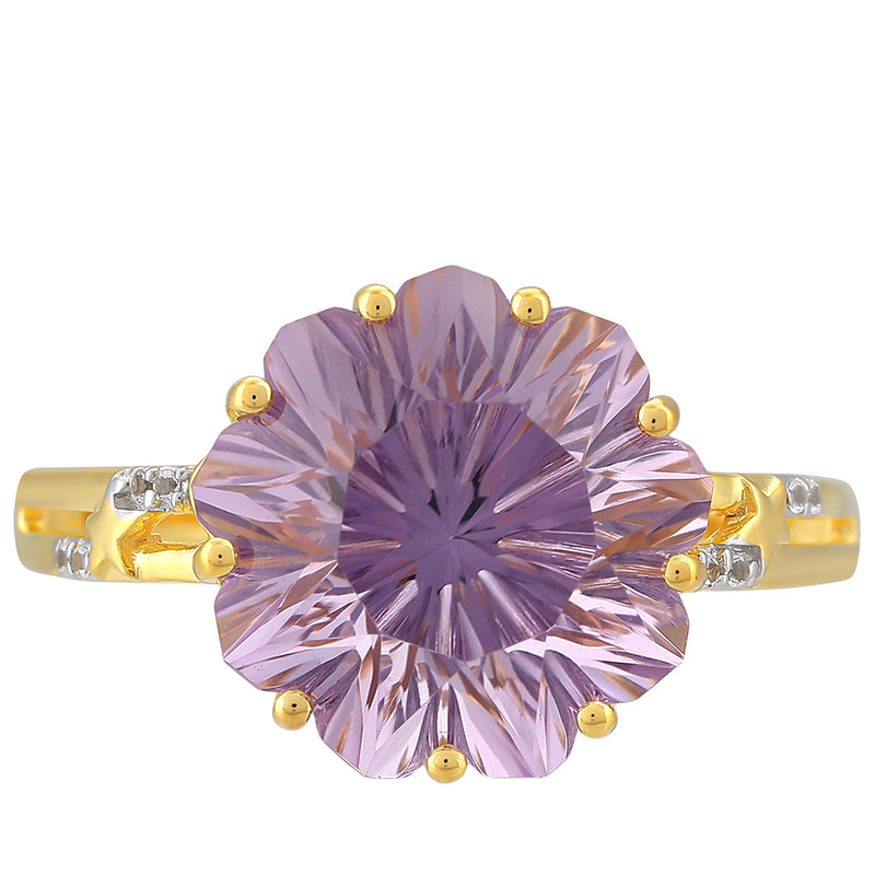 Pozlacený Stříbrný Prsten s Rose de France Ametystem a Bílým Topazem