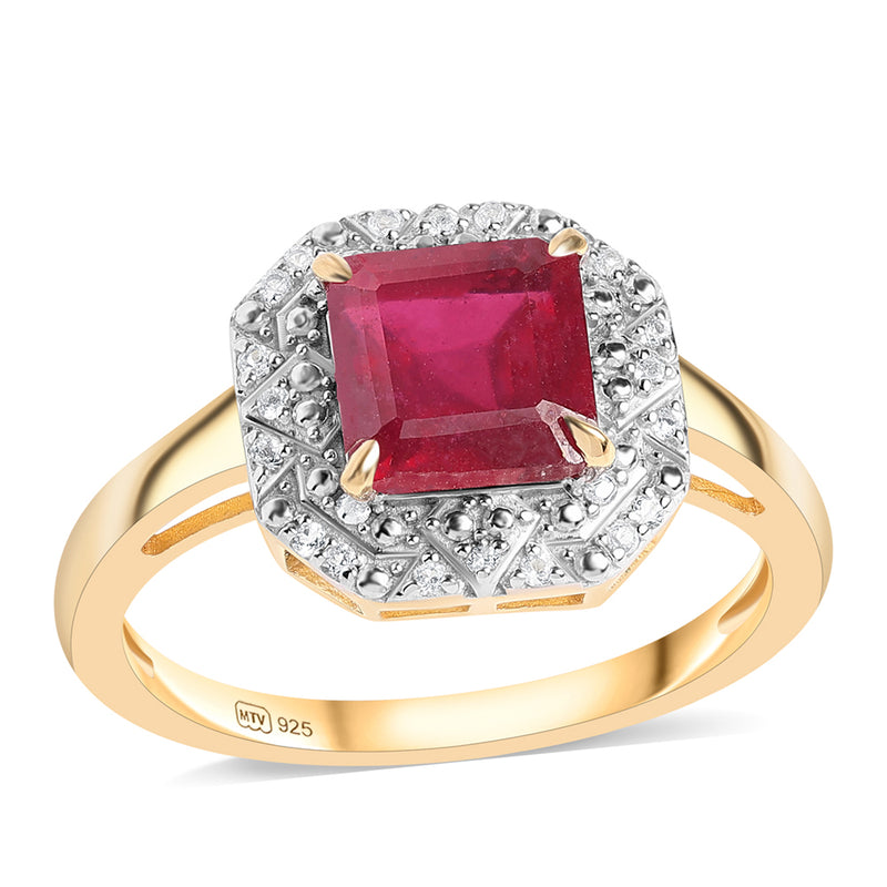 Pozlacený Stříbrný Prsten s Mozambickým Rubínem a Bílým Topazem