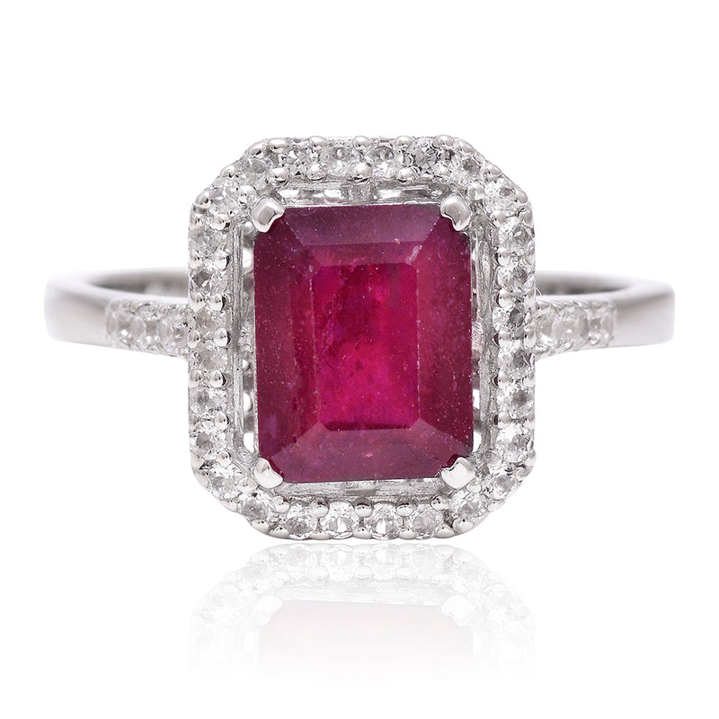 Stříbrný Prsten s Madagaskarským Rubínem a Bílým Topazem