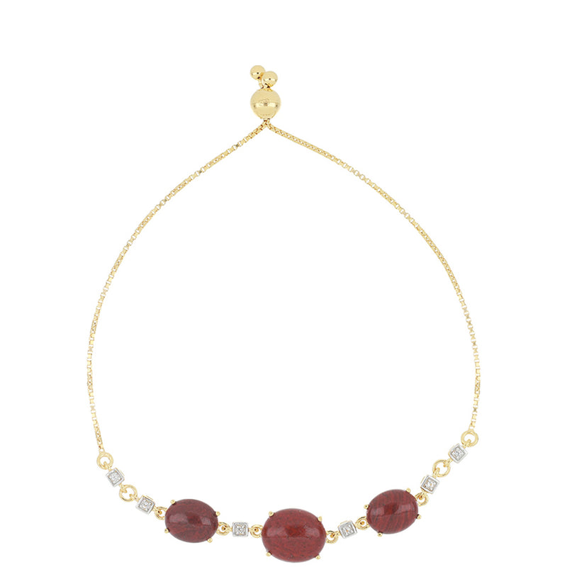 Pozlacený Stříbrný Náramek s Červeným Jaspisem a Bílým Topazem