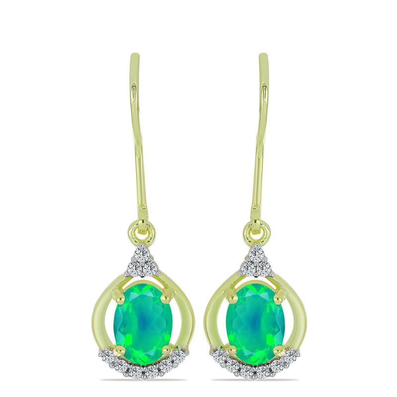 Pozlacené Stříbrné Náušnice se Zeleným Etiopským Opálem z Lega Dembi a Bílým Topazem