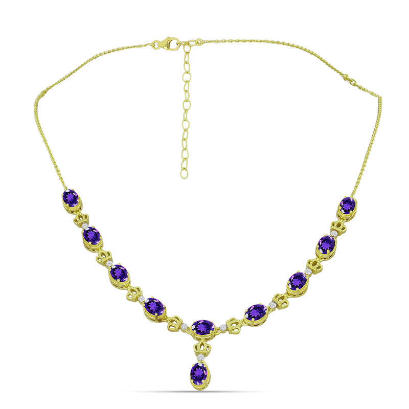 Pozlacený Stříbrný Náhrdelník s Marockým Ametystem a Bílým Topazem