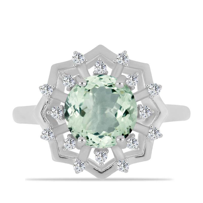 Stříbrný Prsten se Zeleným Ametystem a Bílým Topazem