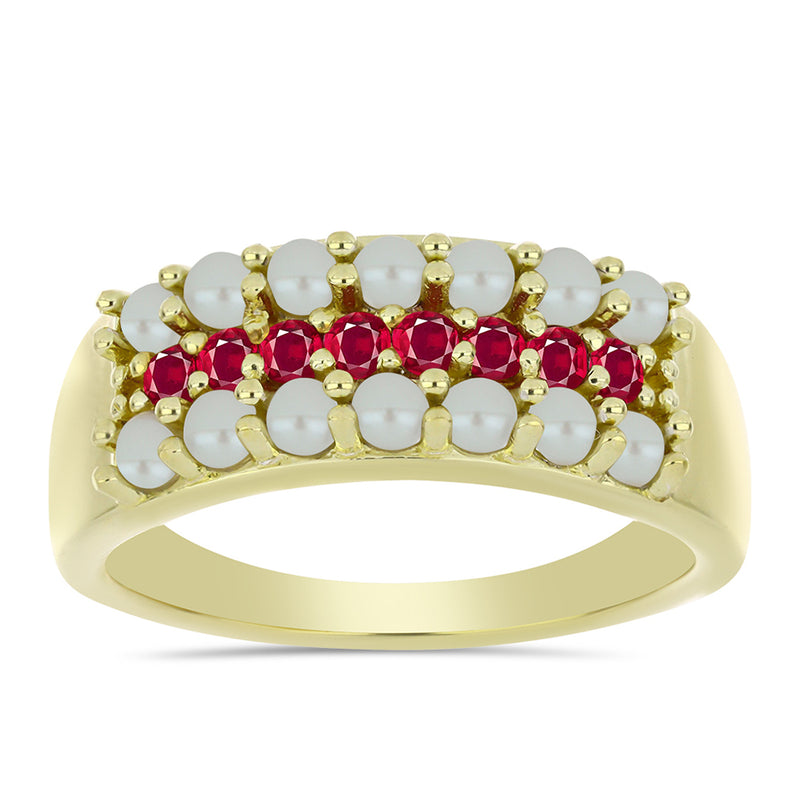 Pozlacený Stříbrný Prsten s Bílou Sladkovodní Perlou a Madagaskarským Rubínem