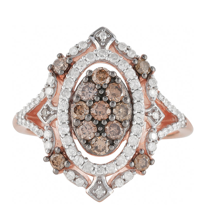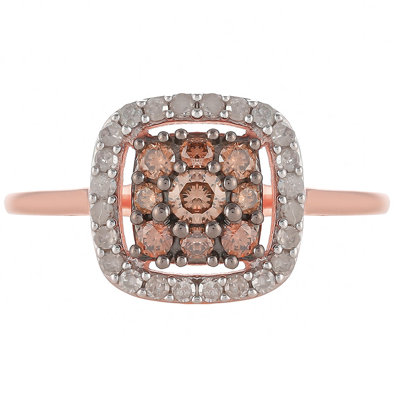 Růžovým Zlatem Pozlacený Stříbrný Prsten s Champagne Diamantem a Bílým Diamantem