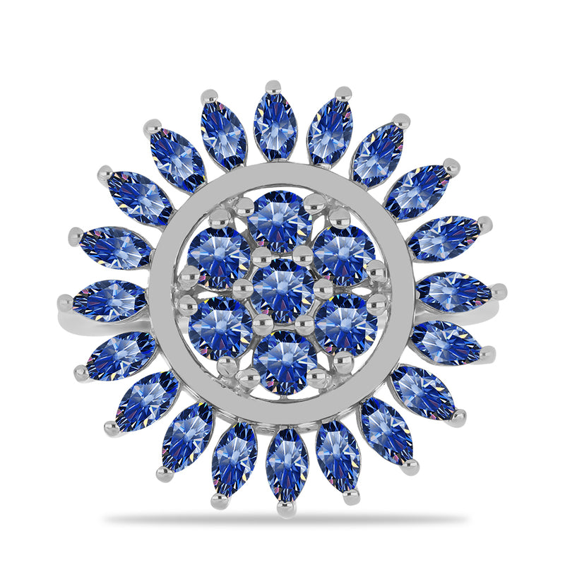 Stříbrný Prsten s Certifikovaný Královským modrým moissanitem pěstovaný v laboratoři