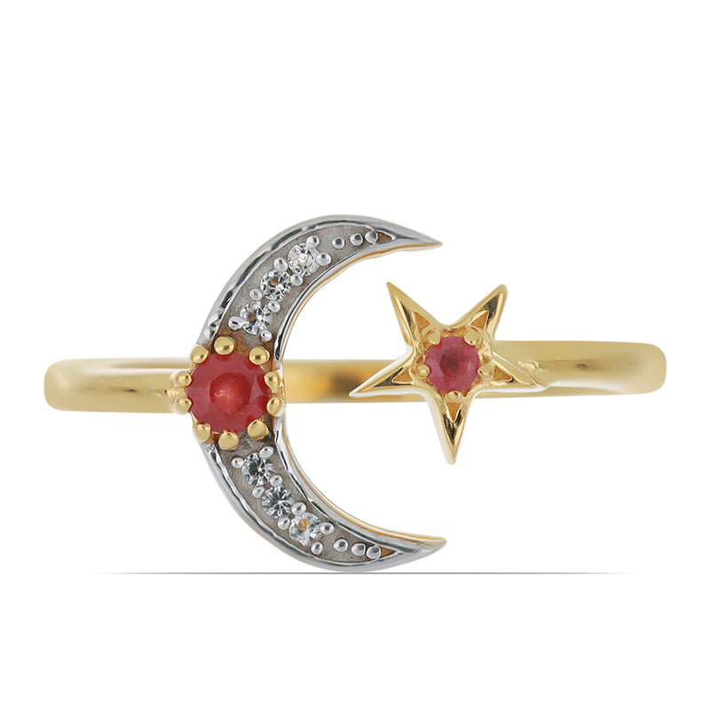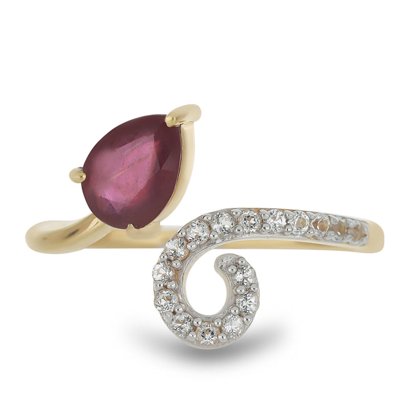 Pozlacený Stříbrný Prsten s Madagaskarským Rubínem a Bílým Topazem