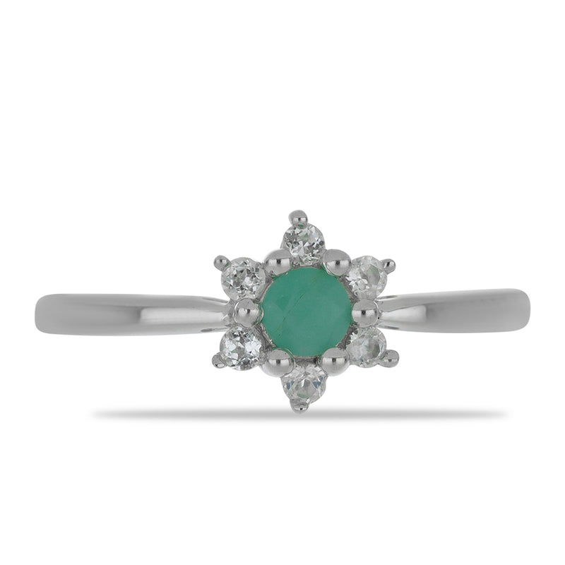 Stříbrný Prsten s Brazilským Smaragdem a Bílým Topazem