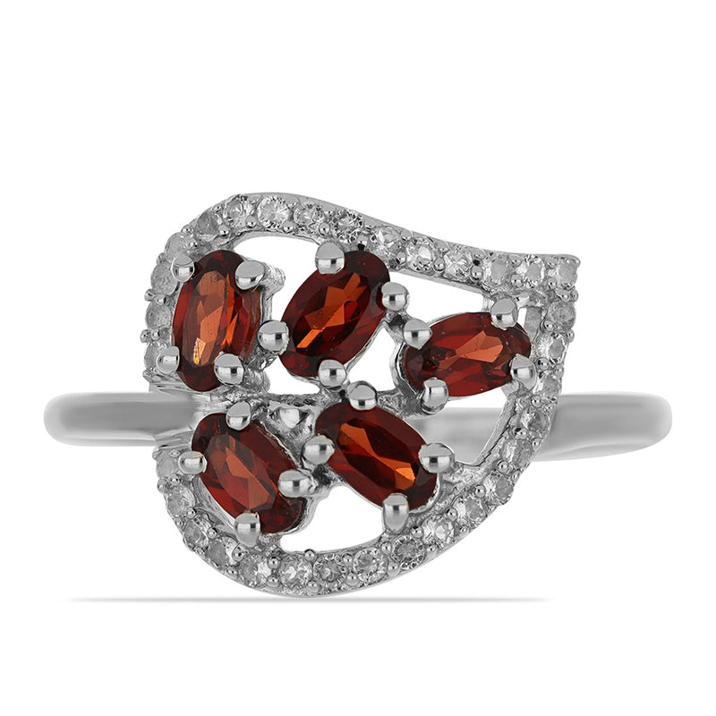 Stříbrný Prsten s Bartonským Granátem a Bílým Topazem