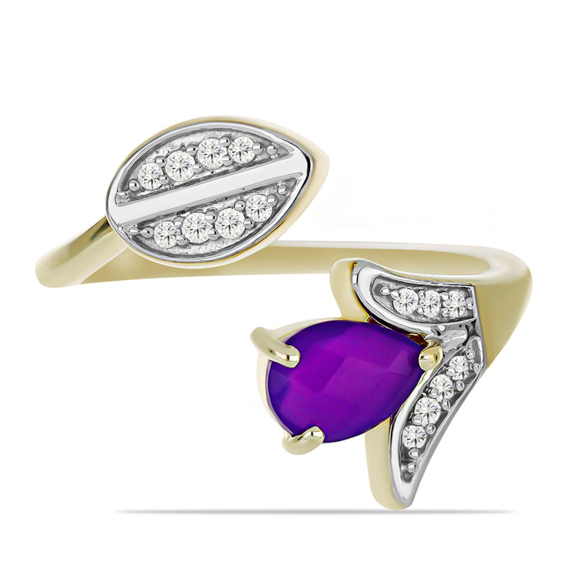 Pozlacený Stříbrný Prsten s Bílým Achátem a Marockým Ametystem