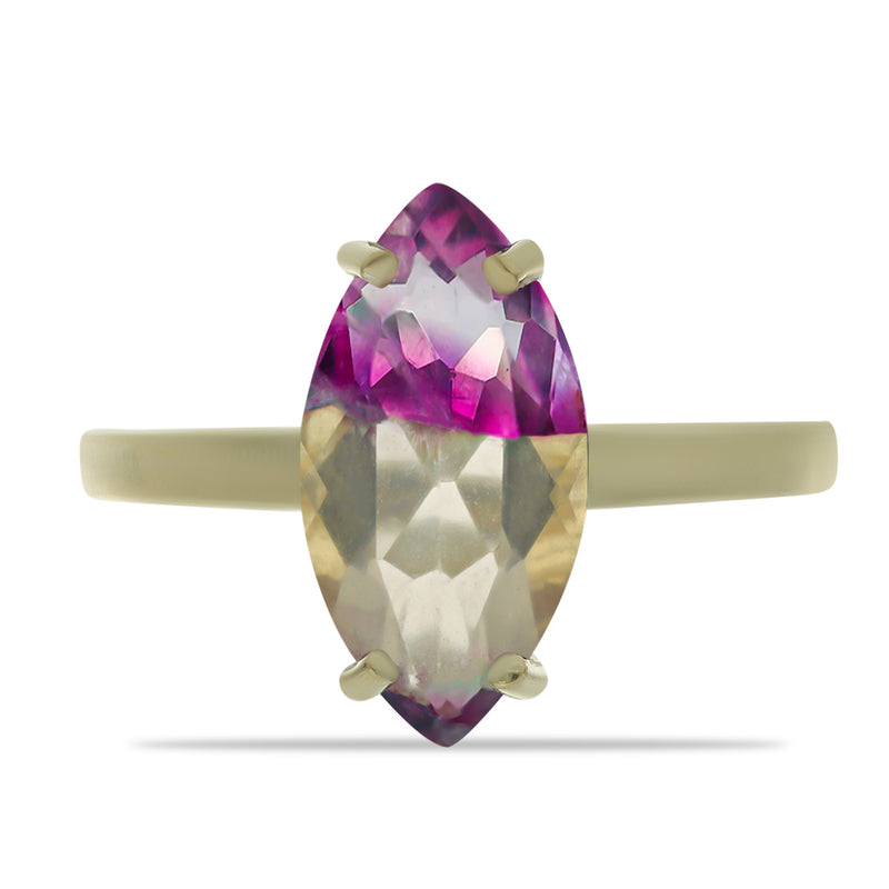 Stříbrný Prsten s Marockým Ametystem a se Zlatým Citrínem z Rio Grande do Sul
