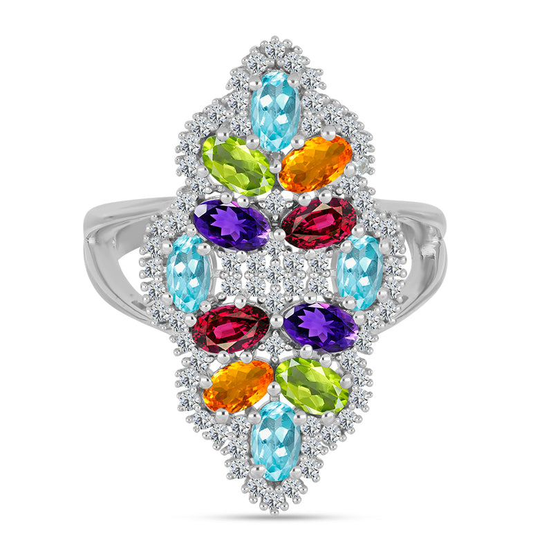 Stříbrný Prsten s Tanzanitem a Bílým Topazem