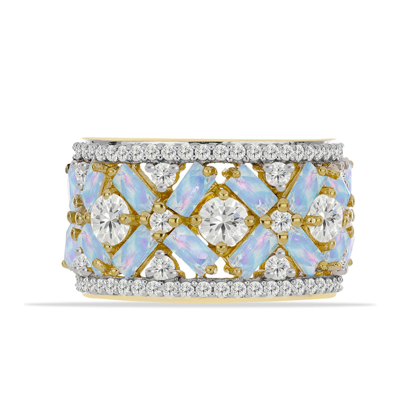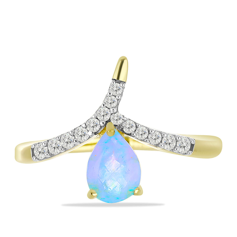 Pozlacený Stříbrný Prsten s Duhovým Měsíčním Kamenem
