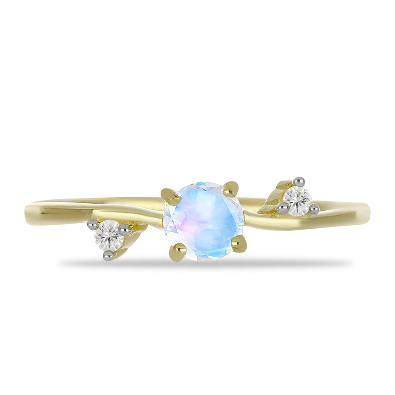 Pozlacený Stříbrný Prsten s Duhovým Měsíčním Kamenem a Bílým Topazem