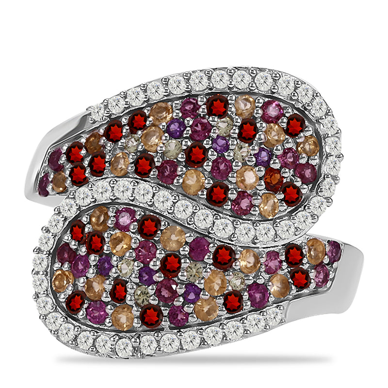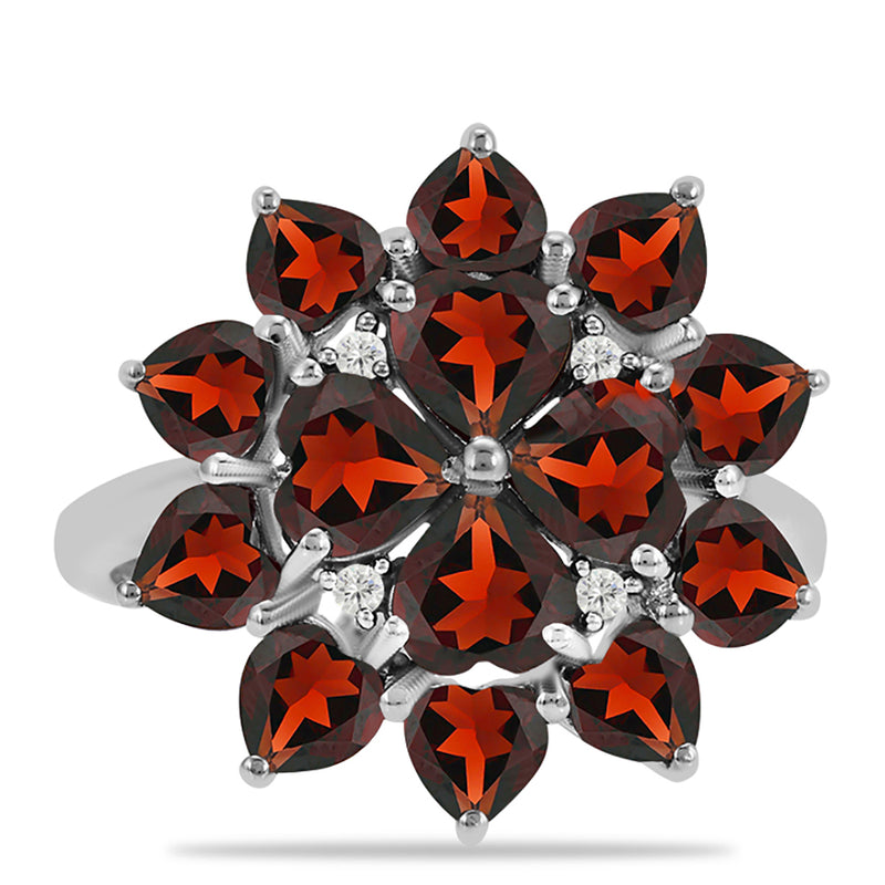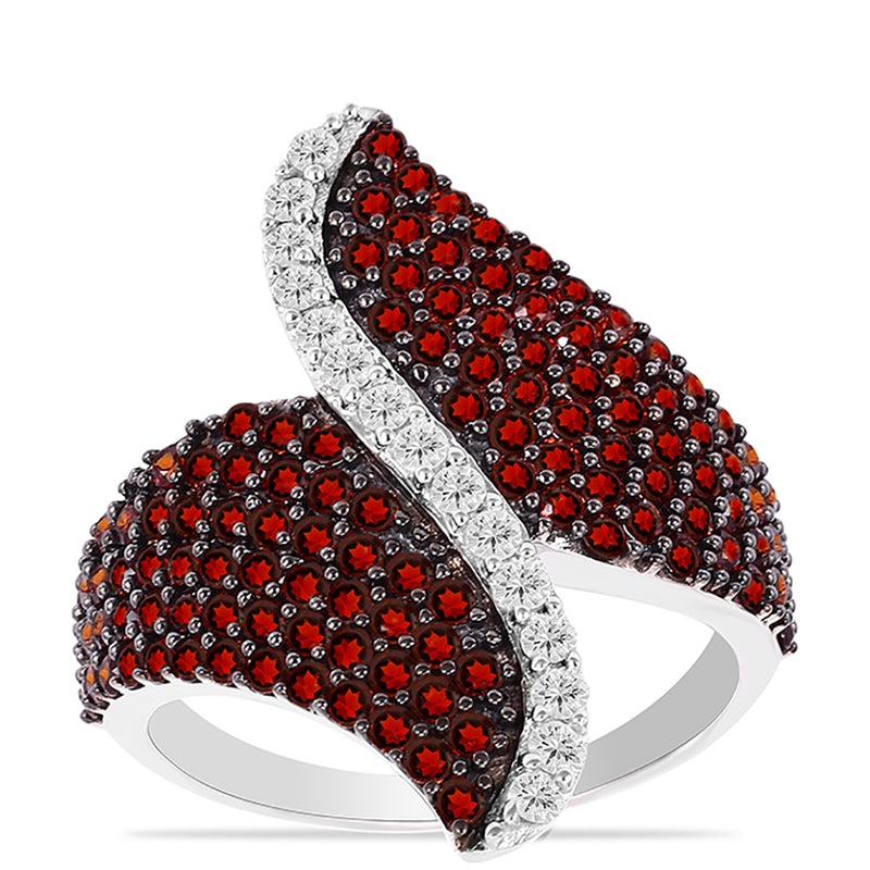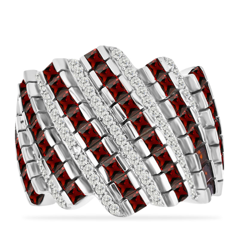 Stříbrný Prsten s Bartonským Granátem a Bílým Topazem