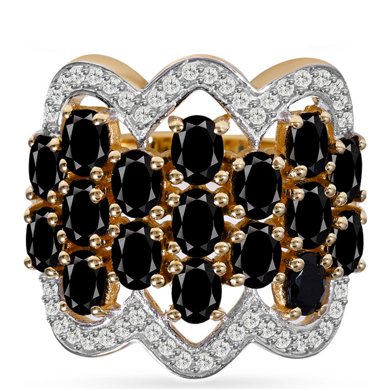 Pozlacený Stříbrný Prsten s Černým Turmalínem z Pelmadulla a Bílým Topazem