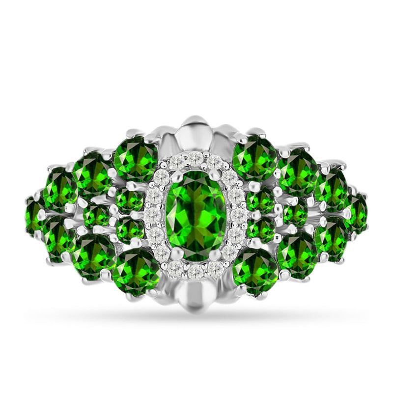 Stříbrný Prsten s Chromovým Diopsidem a Bílým Topazem