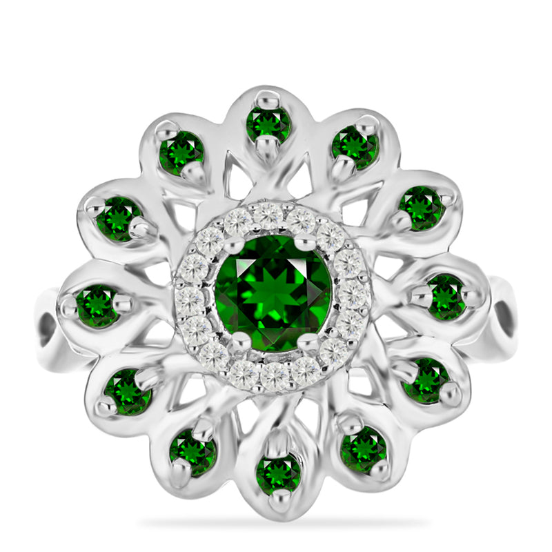 Stříbrný Prsten s Chromovým Diopsidem a Brazilským Smaragdem